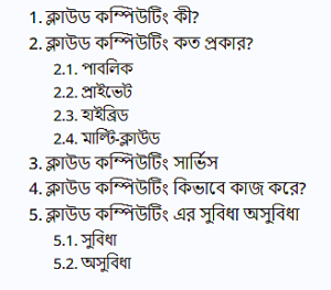 মোটকথা, পারফর্মেন্সের উপর নির্ভর করে এই সার্ভিসকে তিন ভাবে ভাগ করা হয় যেমন SaaS, LaaS, PaaS সার্ভিস। প্রতিটি সার্ভিস আলাদা আলাদা উদ্দেশ্য সম্পন্ন করে। সর্বোপরি ক্লাউড কম্পিউটিং সার্ভার, স্টোরেজ, ডাটাবেজ, অ্যাপ্লিকেশান হোস্টিং, ভার্চুয়াল কম্পিউটার ইত্যাদি বিষয় নিয়ে তৈরি।